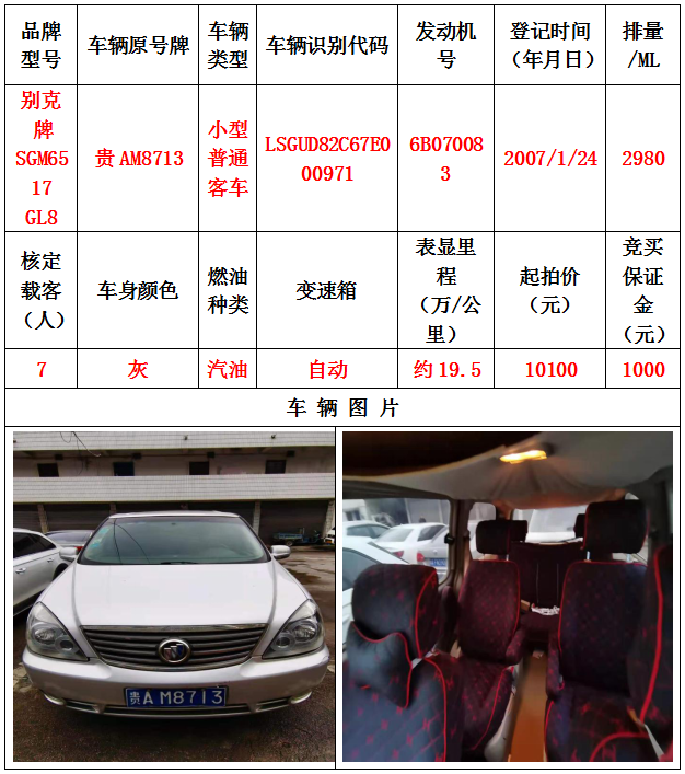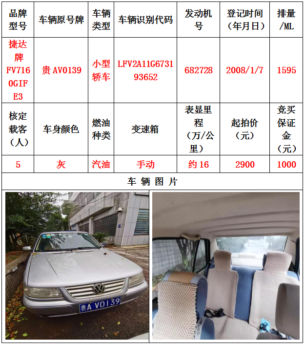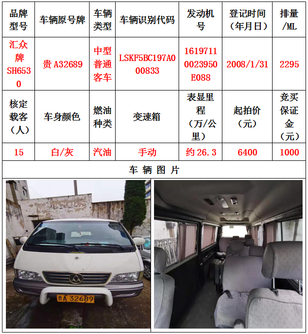 本次拍賣會(huì)拍賣的車輛共計(jì)10輛車,分別為帕薩特牌SVWZ183LJI小型轎車一輛、匯眾牌SH6530中型普通客車一輛、別克牌SGM6517小型普通客車一輛、別克牌SGM7161LE小型轎車一輛、寶來(lái)牌BORA1.6小型轎車一輛、捷達(dá)牌FV7160GiFE3小型轎車五輛(詳情見(jiàn)下文),為打包整體拍賣,不作拆分,整體起拍價(jià):33900元,且只對(duì)標(biāo)的現(xiàn)狀進(jìn)行拍賣,不作任何質(zhì)量擔(dān)保。