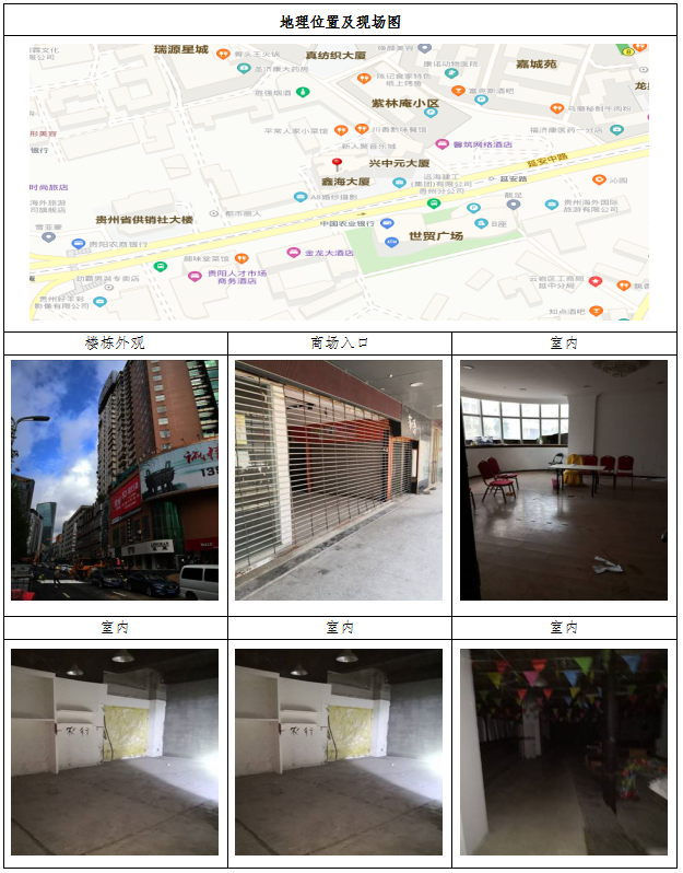 拍品編號2:貴陽市云巖區(qū)延安中路81號鑫海大廈1層35、36、48、49號及2層16、17、50號