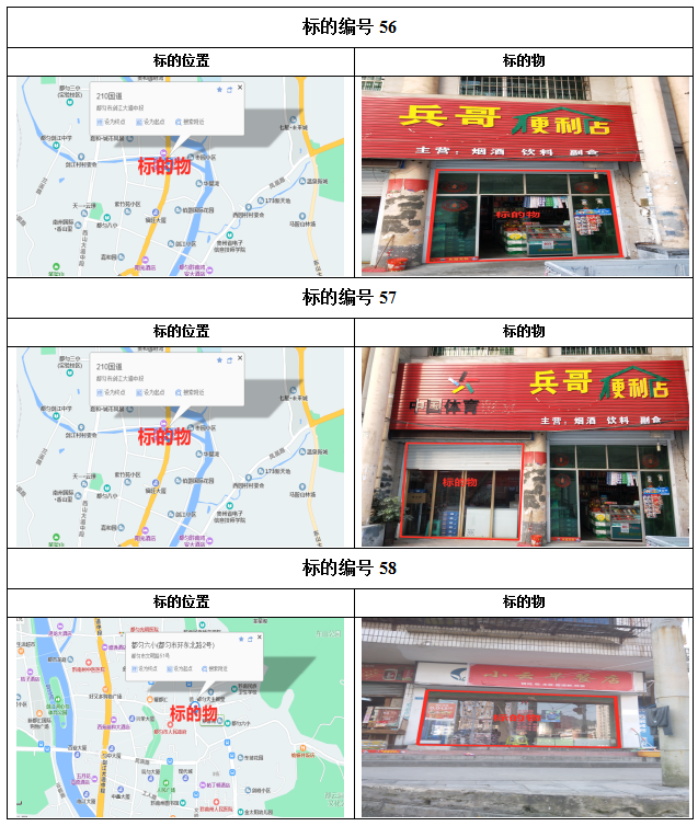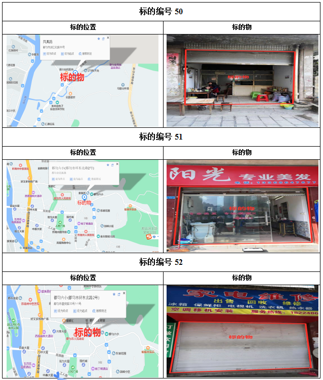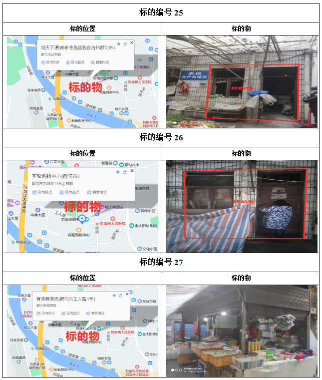 1、都勻市劍江中路、環(huán)東北路、文明路、民族路、勝利路、會云橋、育英巷等62處門面3年租賃權(quán),面積約5㎡-137.74㎡;