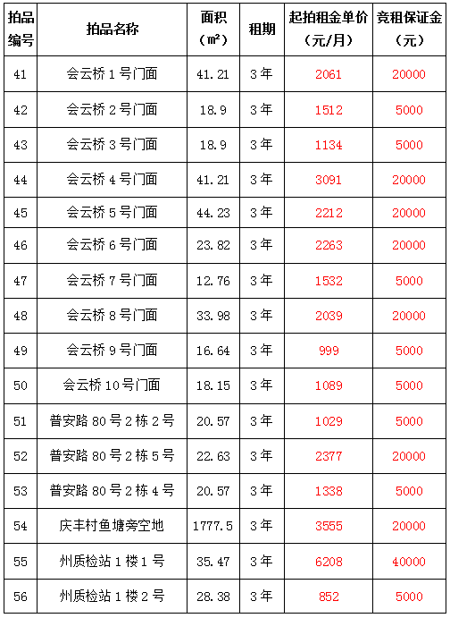 2021年1月28日上午9:00拍賣標的共計40個標的,其中:1—34號標的目前均為租賃狀態(tài),如承租人參與競租,其享有同等價位優(yōu)先購買權(quán),其余35—40標的為閑置狀態(tài)。