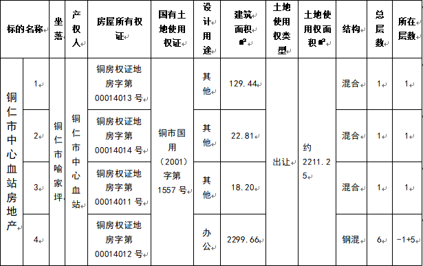 標(biāo)的名稱:銅仁市中心血站房地產(chǎn)