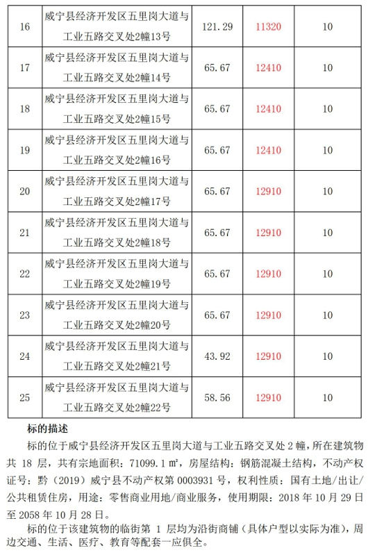 (一)威寧縣經(jīng)濟(jì)開發(fā)區(qū)五里崗大道與工業(yè)五路交叉處公租房4幢沿街商鋪3間,建筑面積:65.44㎡-67.07㎡。