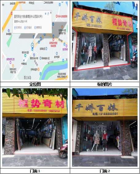 標(biāo)的位于遵義市湄潭縣湄江鎮(zhèn)四十米大道農(nóng)資綜合市場。建筑面積:110㎡,混合結(jié)構(gòu),房屋所有權(quán)證:遵房權(quán)證湄潭縣字第00007841號,混合結(jié)構(gòu);國有土地使用證:湄國用(2003)字第01-257號,用途為:商業(yè)用地,使用權(quán)類型為:出讓用地。