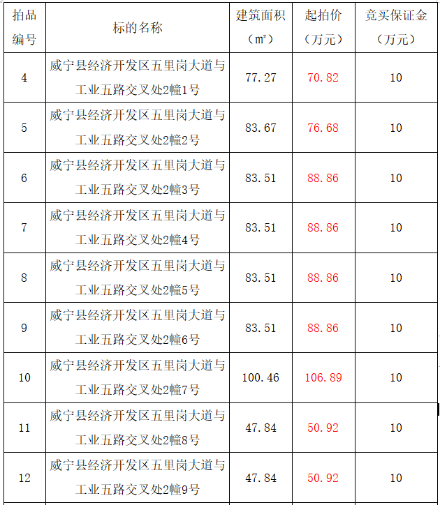 拍品1-3:威寧縣經(jīng)濟開發(fā)區(qū)五里崗大道與工業(yè)五路交叉處4幢沿街商鋪3間