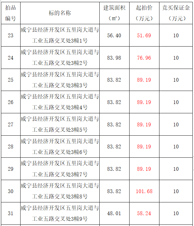 (三)威寧縣經(jīng)濟開發(fā)區(qū)五里崗大道與工業(yè)五路交叉處公租房4幢沿街商鋪1間,建筑面積:66.26㎡。