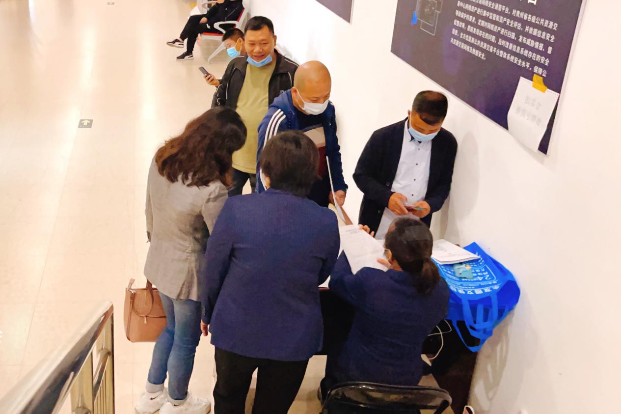 10月13日,翔泓拍賣公司工作人員提前入場進行會場布置,在座椅上張貼序號,入場人員按照防疫預(yù)案要求查驗“三碼”并依次登記、測量體溫,提醒競買人佩戴口罩、對號并隔位入座。