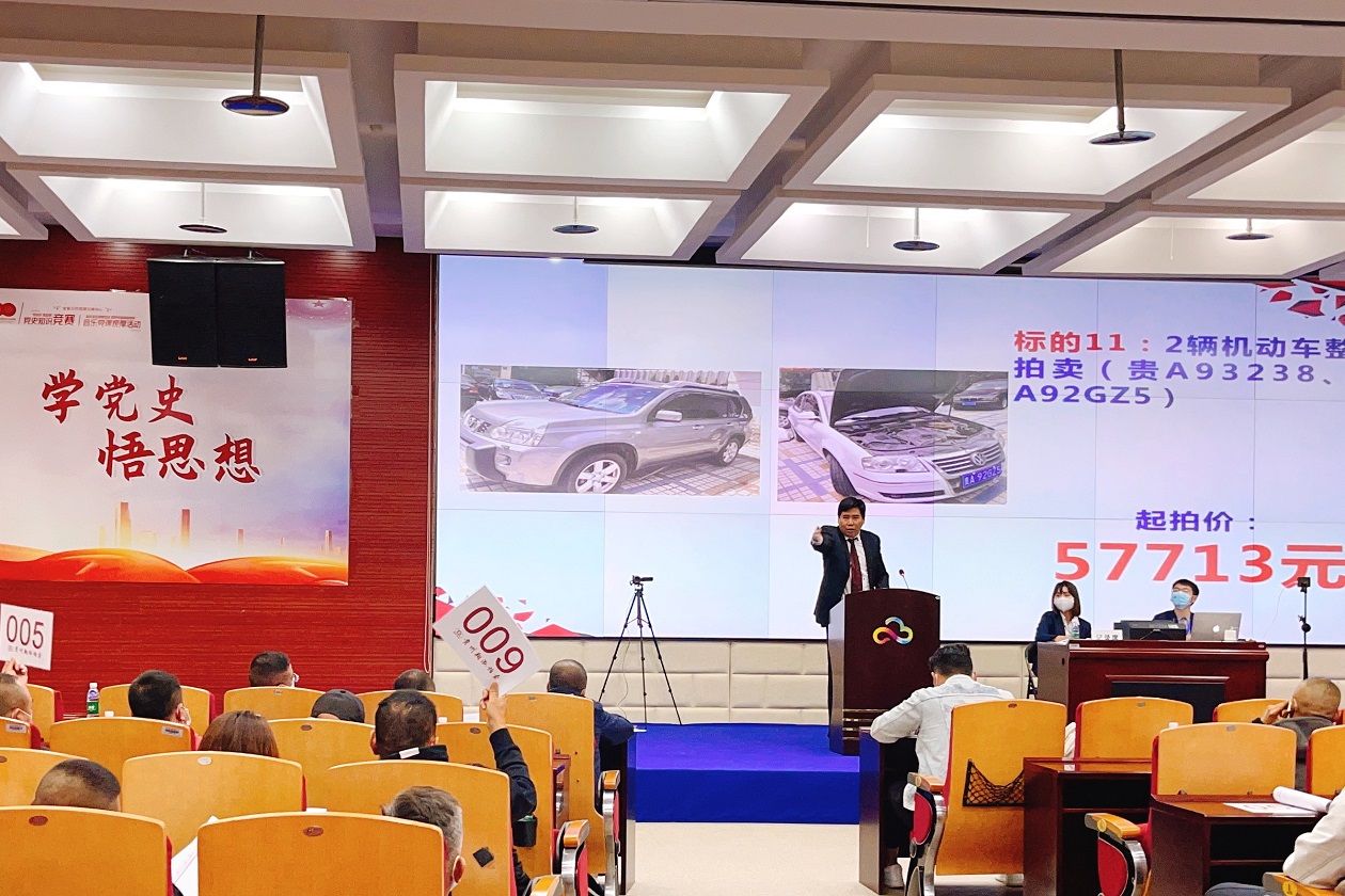 接手車輛處置工作后,翔泓拍賣公司首先與貴州省公共資源交易中心有關(guān)部門對接聯(lián)系工作,由于省交易中心多年沒有拍賣企業(yè)進場交易,貴州省公共資源交易云未設(shè)置拍賣企業(yè)的項目入場通道,翔泓拍賣公司積極與省交易中心及技術(shù)服務(wù)提供商聯(lián)系溝通,反復(fù)交流,完善入場登記所需資料,最終確定可以進場交易并完成項目入場登記,敲定相關(guān)流程,使用省交易中心多功能廳為拍賣會場地。