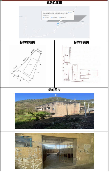 2、天生橋收購(gòu)點(diǎn):坐落于余慶縣構(gòu)皮灘鎮(zhèn)天生橋村;土地使用權(quán)性質(zhì):劃撥;證載土地使用權(quán)面積:1513.1㎡;證載建筑面積:1040.95㎡;起拍價(jià):15.93萬(wàn)元;保證金:2萬(wàn)元;