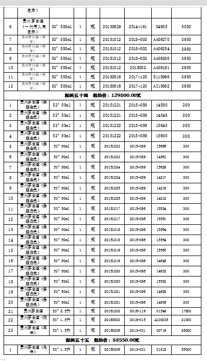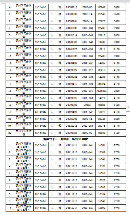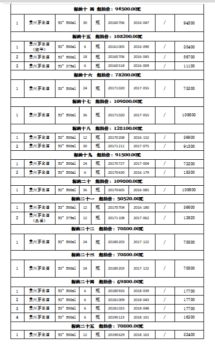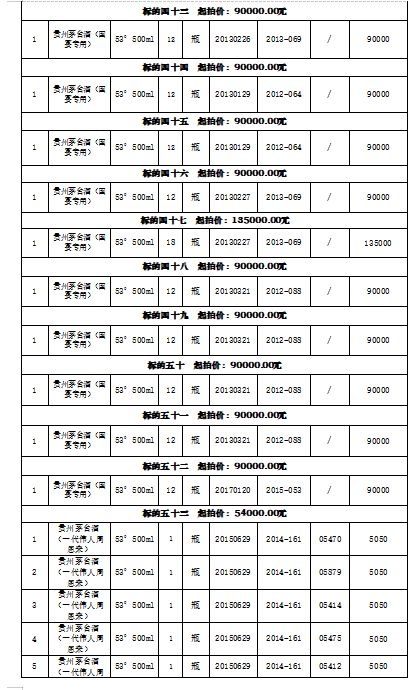 注:本場拍賣標的經過貴州茅臺酒股份有限公司鑒定為其公司生產。所有標的按現狀進行拍賣,競買人自行判斷。報名后持報名成功短信進入展示現場看樣,看樣時需提前預約,配合工作人員安排。競價成功的買受人需公示期過后付款提貨。競買人需到現場查驗,如未到現場實地看樣的競買人,視為對本標的實物現狀的確認,責任自負。成交后買受人需向拍賣人另行支付成交價2%的傭金。競買人應于2022年1月13日下午13:20時前入場,遲到視為放棄此次競拍。