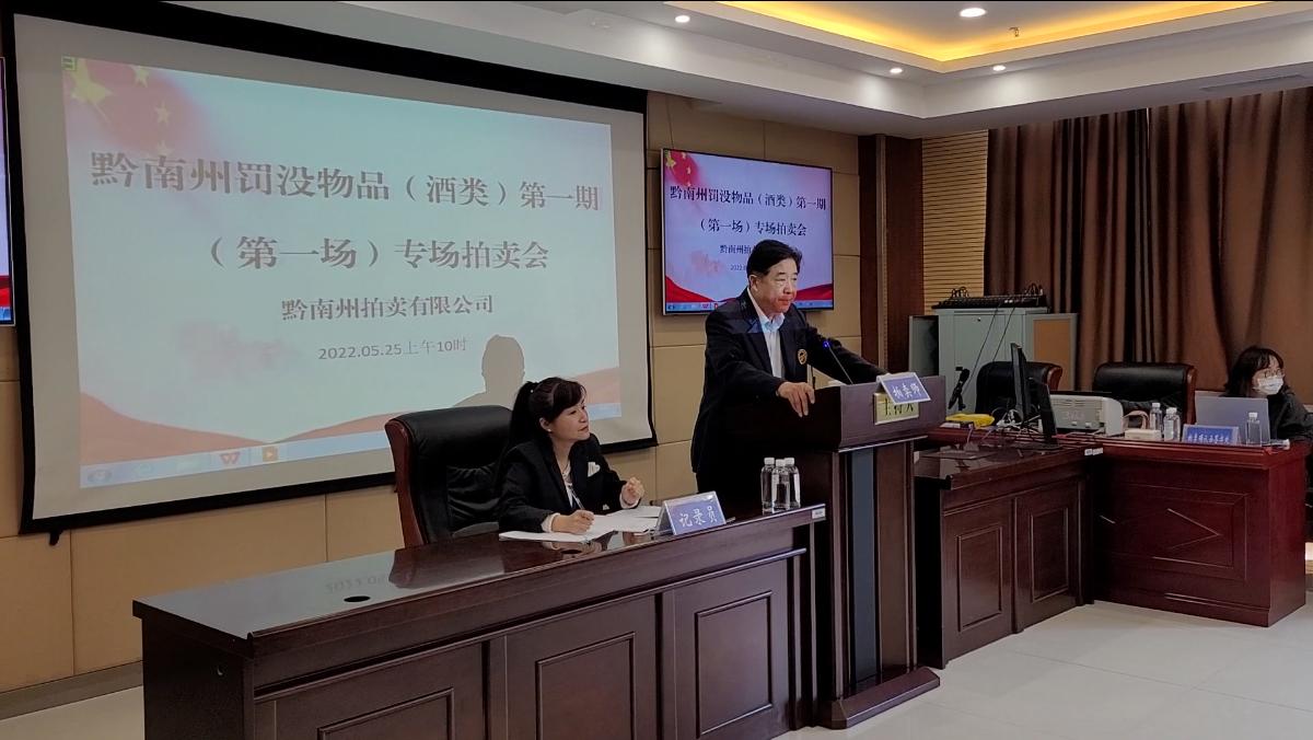 黔南州罰沒物資(酒類)資產(chǎn)處置工作由黔南州拍賣有限公司分四期完成;第一期茅臺酒專場拍賣會采取現(xiàn)場和網(wǎng)絡(luò)相結(jié)合的拍賣方式進行,現(xiàn)場拍賣會于2022年5月25日、5月26日在黔南州公共資源交易中心多能廳舉行。