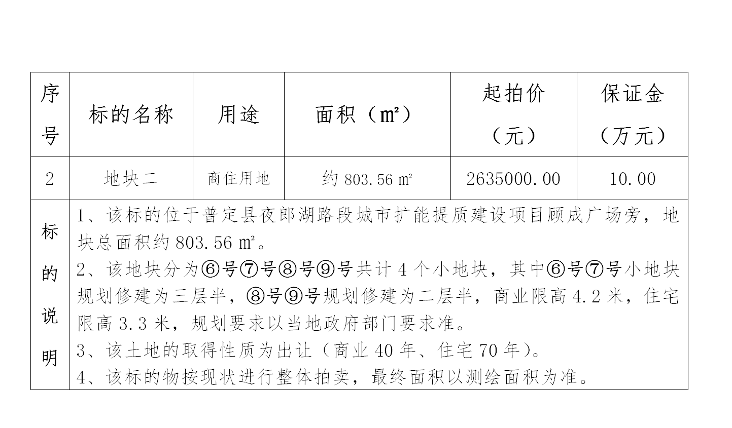 地塊二 ¥ 2635000.00元 保證金:10萬(wàn)元