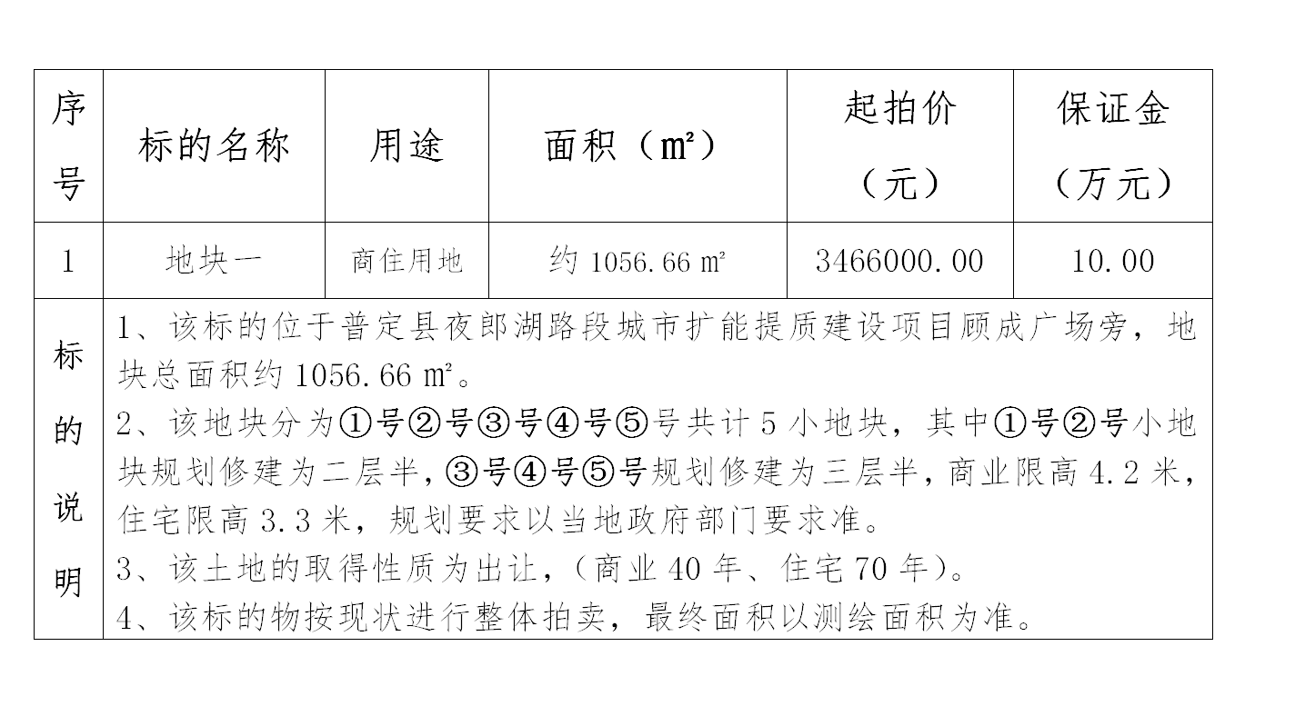 起拍價(jià):地塊一 ¥ 3466000.00元 保證金:10萬(wàn)元