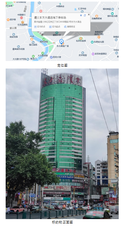 1、貴州省遵義市紅花崗區(qū)中華南路丁字口遵義大飯店主塔樓7層2號(hào)辦公用房(總建筑面積:375.23㎡)。
