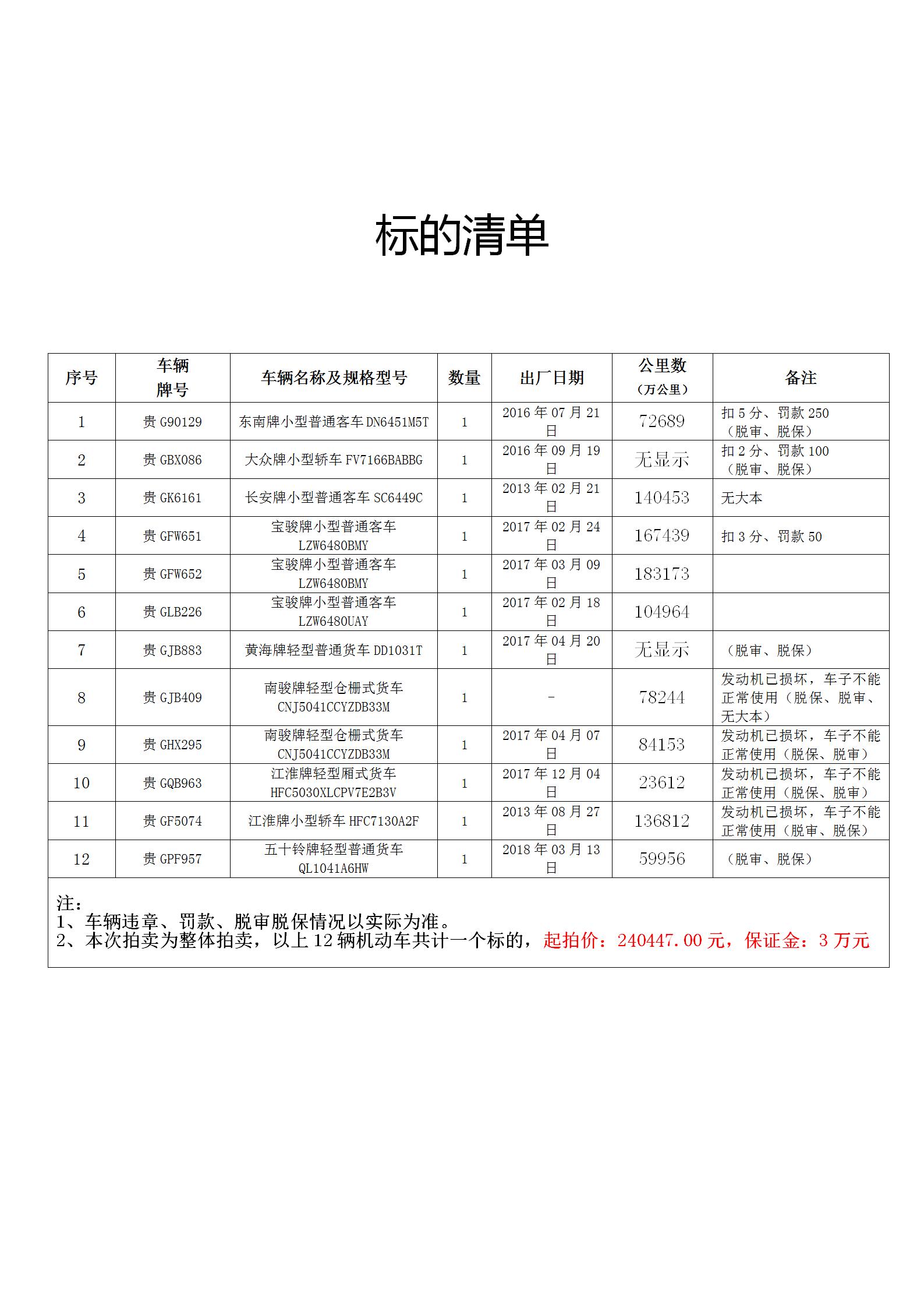 大眾牌、寶駿牌、東南牌、黃海牌、長安牌、南俊牌等12輛公務用車整體打包拍賣